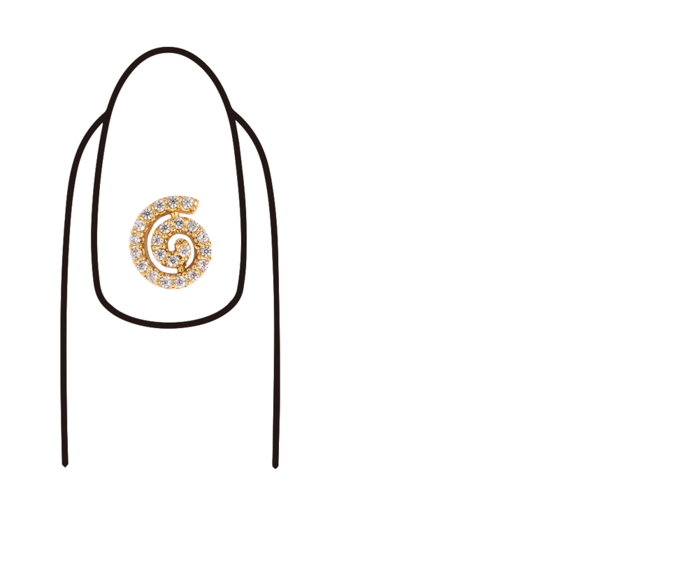 손톱에 부착하였을 때의 대략적인 크기입니다. 일반적인 손톱 사이즈의 스케일이며, 손톱 모양과 크기에 따라 다를 수 있습니다.