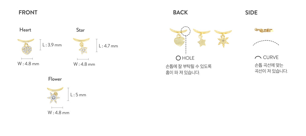 손톱에 부착하였을 때의 대략적인 크기입니다. 일반적인 손톱 사이즈의 스케일이며, 손톱 모양과 크기에 따라 다를 수 있습니다.
