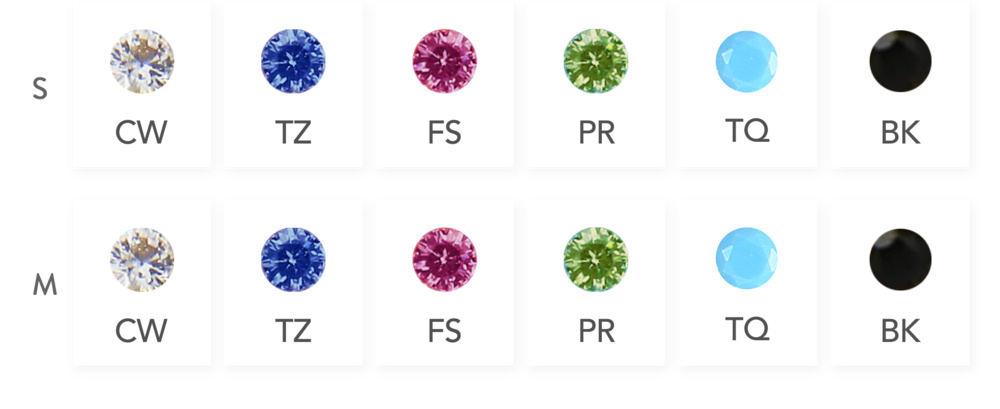 Intricate shared prong setting. This design focuses on displaying color only and was inspired by repeat patterns. The jewelry itself can become a repeat pattern when matched with one another. 13 Nano stones are laid out to create a monotonous shimmer. Available in two sizes, small and medium. Mix these two sizes and colors together to create a color pattern of your own. Small is curved horizontally to fit the horizontal nail curve. Medium is slightly curved horizontally and vertically to fit the nail curves