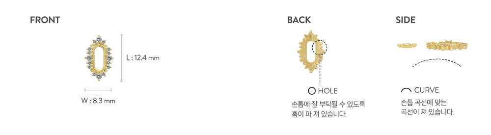 손톱에 부착하였을 때의 대략적인 크기입니다. 일반적인 손톱 사이즈의 스케일이며, 손톱 모양과 크기에 따라 다를 수 있습니다.