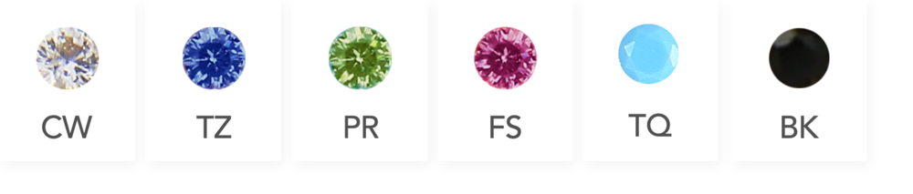 The ‘Ziggy Zag Petite’ has refined prong settings with a thin zigzag line in the middle. Mix colors and match with ‘Ziggy Zag’. Interchange them on different nails to mingle up various zigzags and colors. Using one can enhance a clean simple look or use several for a crazy zigzag pattern. The pieces are curved to fit the horizontal nail curve.